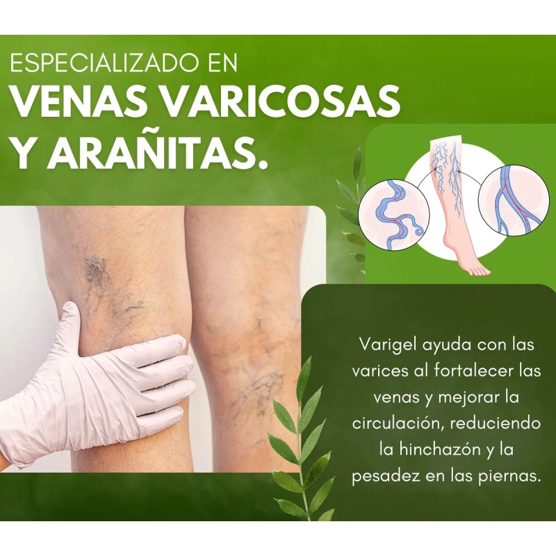 Experimenta alivio y confort con Varigel, el gel relajante diseñado para complementar el tratamiento de varices, arañitas y problemas de circulación en tus piernas. Ya sea que pases largas horas de pie o sentado, Varigel es la solución ideal para revitalizar tus piernas y mejorar tu bienestar.