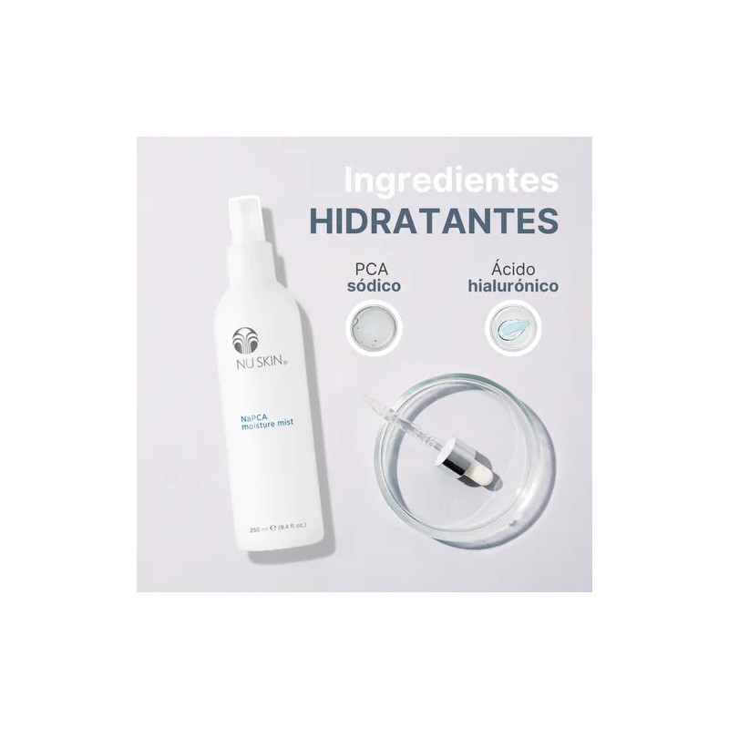 Renueva tu piel, cabello y cuerpo con este Kit 3 Napca Moisture Mist, un spray ultrahidratante enriquecido con Ácido Hialurónico y PCA sódico. Tres razones para destacarlo: