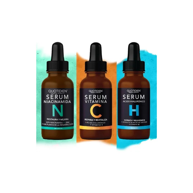 Kit 3 Serums: Vitamina C + Ácido Hialurónico + Niacinamida