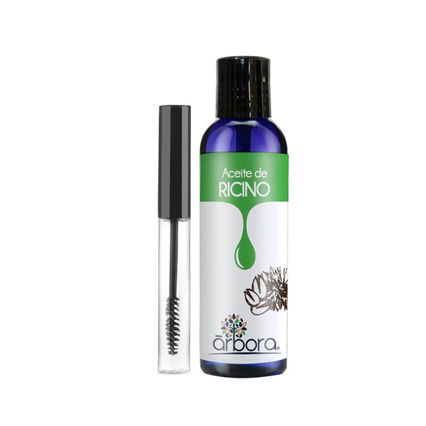 Kit Aceite Ricino + Aplicador | Estimula Crecimiento y Densidad de Pestañas, Cejas y Barba |Restaura Cabello | Hidrata y Fortalece Uñas| Alarga Pestañas |Con Vitamina E y Omegas 100% Puro 90ml Árbora