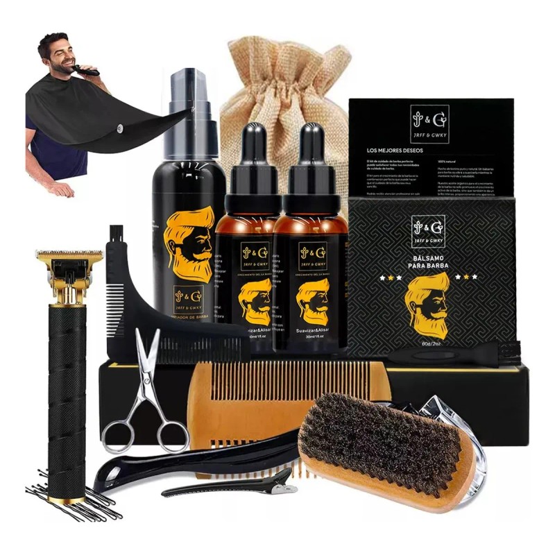 Prepárate para transformar tu barba en una obra maestra con este exquisito kit de cuidado para hombres. 🧔✨ No se trata solo de tener una barba; se trata de exhibirla con orgullo y estilo. Desde el primer instante en que abras este elegante cofre del tesoro, sentirás la promesa de una barba más suave, brillante y saludable. Imagina una barba que irradia confianza, que captura miradas y que te hace sentir invencible. ¡Esa es la promesa de Jrff & Gwky!