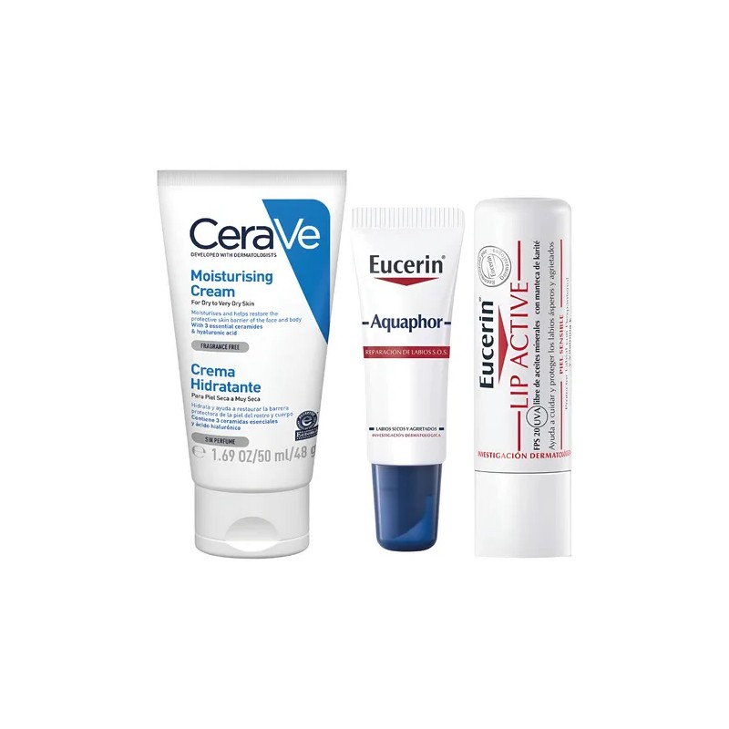 Kit Bolso con Crema Hidratante CeraVe y Protector Labial Eucerin – Hidratación y Protección Diaria
