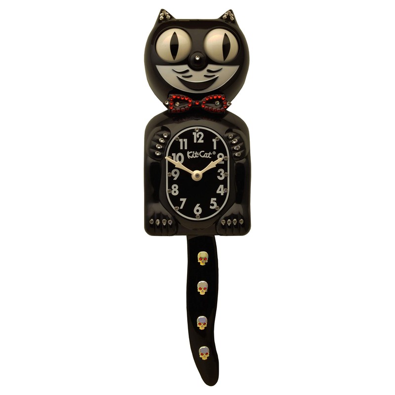Kit Cat Klock Hand Crafted Skull Tail/Bow Crystals Jeweled Clock