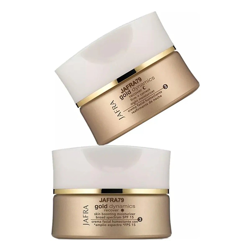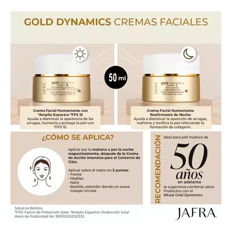 kit crema facial antiedad jafra, crema día y noche antiarrugas, tratamiento anti-edad completo, crema hidratante reafirmante, cuidado piel madura jafra gold dynamics.