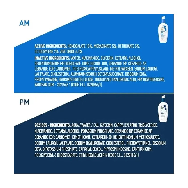 El Kit Crema Facial CeraVe AM & PM está diseñado para brindar un cuidado integral a tu piel durante todo el día. La crema AM hidrata profundamente y protege con filtro solar para cuidar la piel de los daños ambientales y los rayos UV. La crema PM, en cambio, ayuda a reparar y regenerar la piel mientras duermes, gracias a su fórmula con ingredientes hidratantes y restauradores como ceramidas y ácido hialurónico. Este kit es ideal para todo tipo de piel, especialmente piel seca y sensible, y promueve una piel suave, nutrida y con una apariencia renovada. 🌿✨