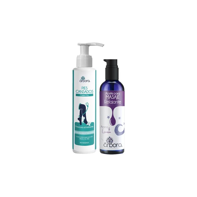 Kit Masaje Relajante: Crema para pies y piernas cansados con Menta y Tea Tree (120ml) + Aceite de Masaje Relajante con Lavanda (90ml)