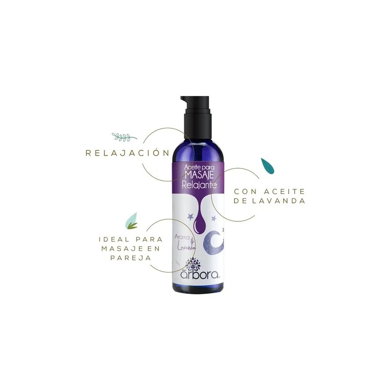 Aceite de masaje RELAJANTE LAVANDA. El aceite tiene una sensación ligera al tacto y su dispensador hace que sea de muy fácil aplicación. Como vehículo utilizamos aceites vegetales por lo que este producto dejará tu piel muy hidratada.