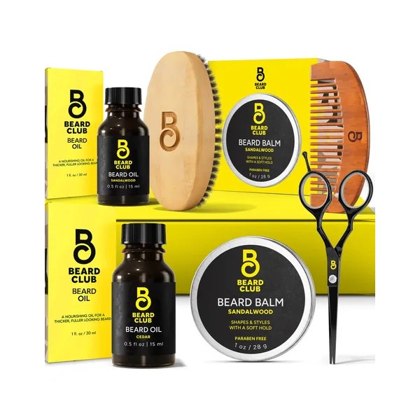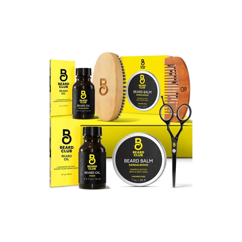 Transforma tu rutina de cuidado de barba con el kit para barba The Beard Club para hombre, el mejor kit de cuidado de barba que promueve el crecimiento y el mantenimiento de la barba. Este kit integral para el cuidado de la barba incluye aceites para barba de cedro y sándalo con intensos aromas masculinos que nutren profundamente la barba, mientras que nuestro bálsamo para barba de sándalo proporciona un peinado e hidratación óptimos sin dejar un acabado graso. Mejora tu experiencia de aseo con nuestro cepillo de cerdas de jabalí de primera calidad y un peine ergonómico de madera, perfectos para distribuir la grasa y desenredar los nudos sin electricidad estática. Consigue un recorte preciso con nuestras duraderas tijeras para recortar barba, que te dan un acabado cuidado con la calidad de un barbero en casa. Ya sea que estés buscando un kit de barba para hombres negros, un kit de cuidado del bigote o el mejor kit para el crecimiento de la barba, este completo kit de cuidado de barba para hombre es un regalo ideal para cualquier ocasión. Mejora tu rutina de cuidado personal con el kit para barba The Beard Club, tu set de aseo masculino esencial para tener una barba elegante y bien mantenida.