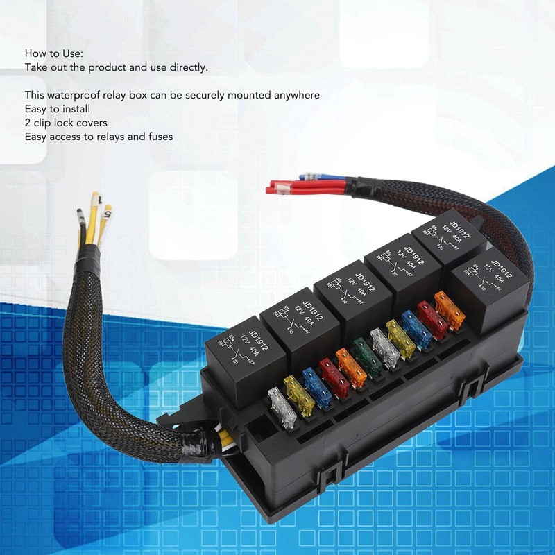 - [AMPLIA DE USO] - Esta caja de relés de fusibles es perfecta para usar en automóviles, yates, barcos y más, esta caja de relés se usa ampliamente y proporciona un rendimiento confiable para una variedad de aplicaciones. Los fusibles de cuchilla son 2 x 5 A, 2 x 10 A, 2 x 15 A, 2 x 20 A, 2 x 25 A, 1 x 30 A.