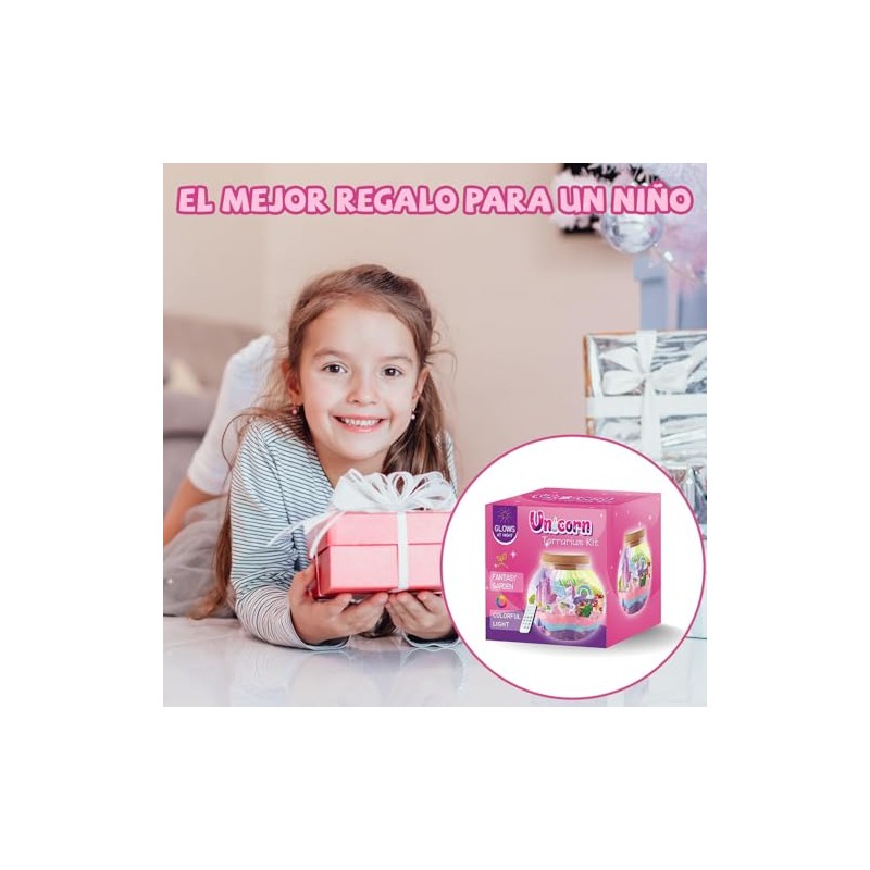 - 【UNICORN DIY CRAFT KIT】Our Glow Unicorn Clear Container Kit includes clear jars, 13-color LED night light with remote control, unicorns, castles, rainbows, space sand, trees, flowers and more decorative accessories. The accessory-rich kit includes everything kids need to create a unicorn garden.