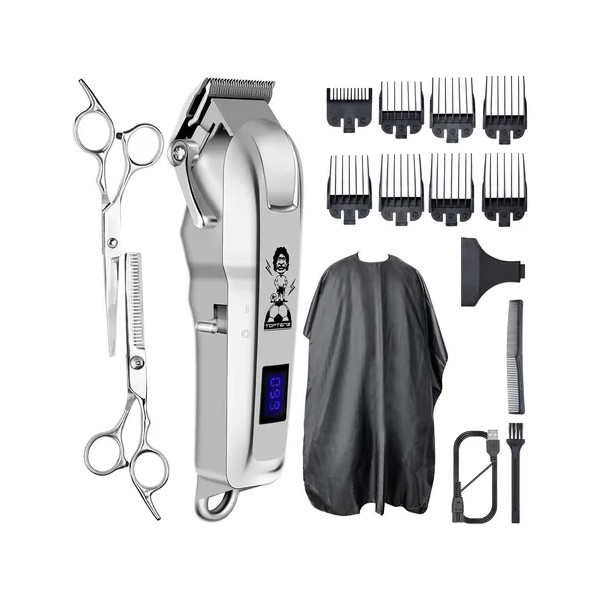 TOPTENZ Cortadora de pelo profesional Cortadora de barba Cortadora de pelo para hombres mujeres Cortadoras sin cable Kit de peluquería profesional, recargable, batería de larga duración, 8 peines guía.