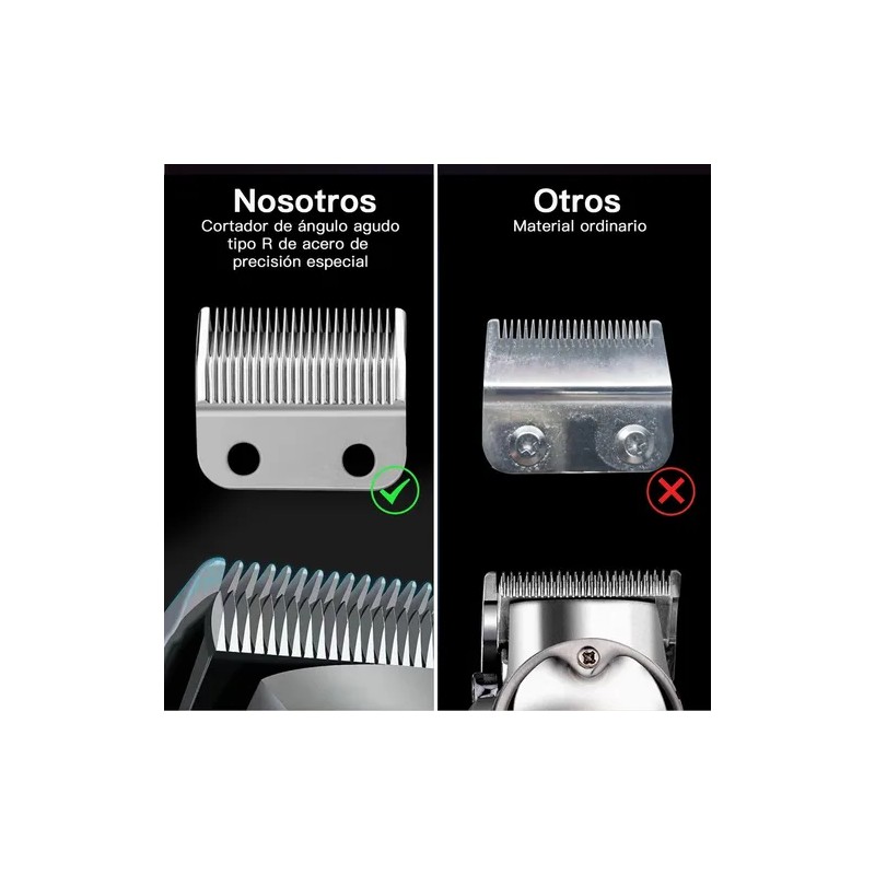 La cuchilla de acero inoxidable autoafilable se mantiene afilada y proporciona un corte limpio y ordenado. Los dientes de la cuchilla están bien alineados entre sí para eliminar el vello sin enganches ni tirones, ofreciendo un corte de pelo eficaz.