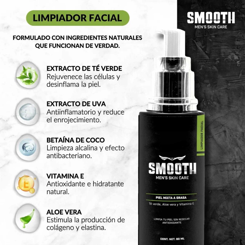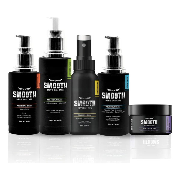 kit cuidado facial piel mixta grasa méxico, rutina facial completa piel grasa imperfecciones, productos faciales para piel con brillo poros abiertos, smooth kit facial matificante hidratante no comedogénico, tratamiento facial diario piel grasa hombres mujeres.