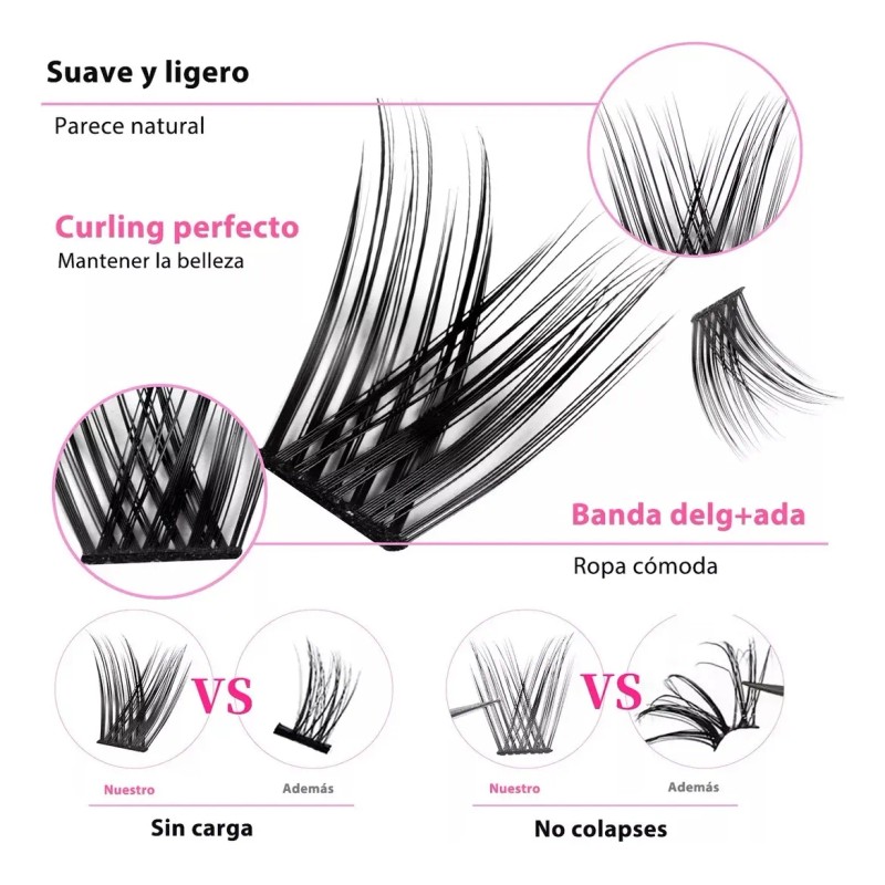 La apariencia depende de usted: cree una apariencia de pestañas personalizable con grupos de pestañas individuales de diferentes longitudes y volúmenes (10-16 mm, 30D, 40D). Los juegos de pestañas en racimo son versátiles y se pueden usar para una variedad de ocasiones, ya sea una fiesta de pijamas con amigos, una ocasión especial o un día de trabajo. ¡Lograrás todos estos looks en poco tiempo!