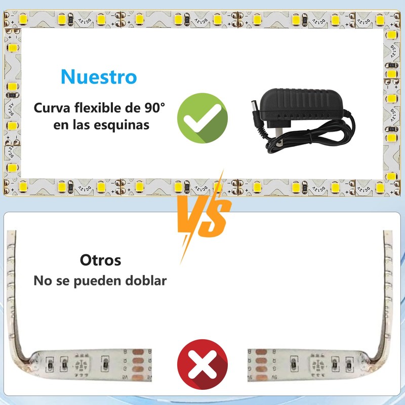 - Fácil de instalar:la mayor ventaja de nuestras tiras de luz es que no hay necesidad de perforar en la pared.Basta con arrancar la cinta adhesiva de doble cara y pegar el led a la superficie deseada.Puede personalizar o recortar los LED para adaptarse al tamaño del marco.