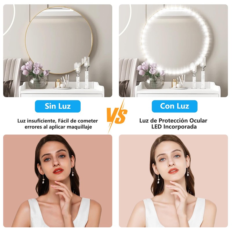 - Luces brillantes:la clave para un peinado más rápido y mejor es un maquillaje bien iluminado.Nuestras luces LED blancas súper brillantes facilitan el maquillaje,la ropa y otras ceremonias matutinas y nocturnas.