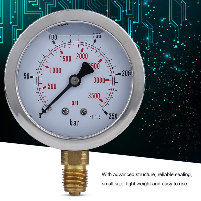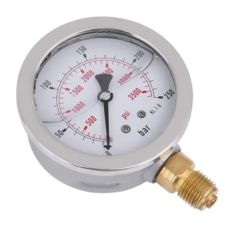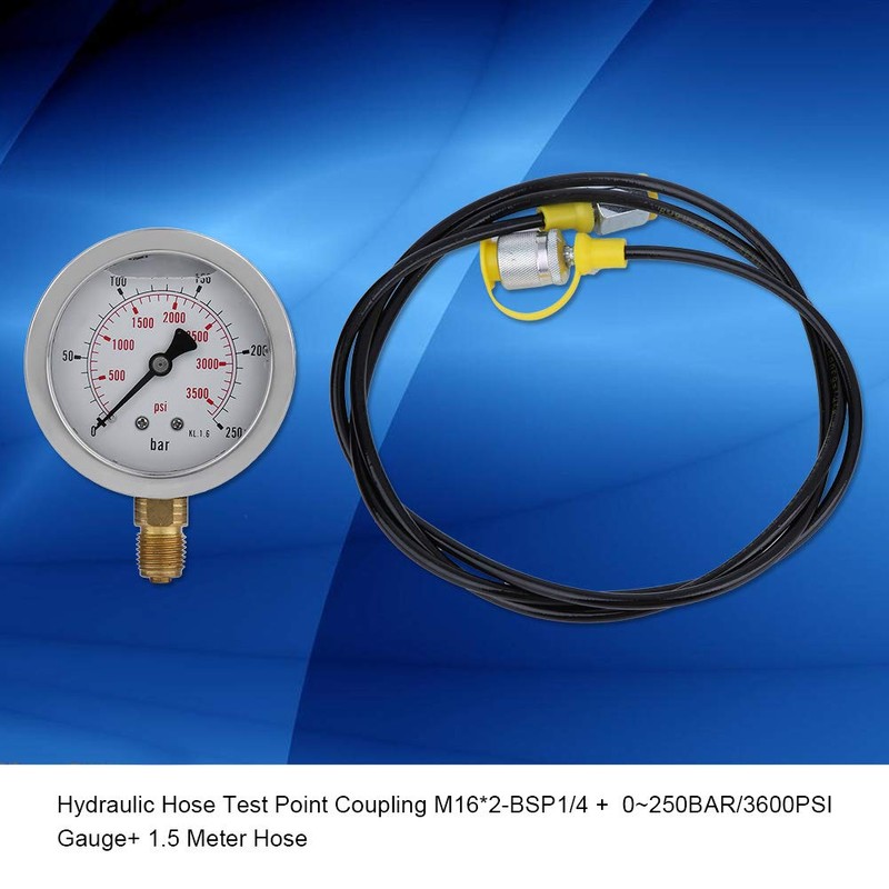 Kit de Prueba de Presión de Manguera Hidráulica Acoplamiento de Punto M16 * 2-BSP1 / 4 + 0~250BAR / 3600PSI Manómetro + Manguera de 1,5 Metros, manómetro