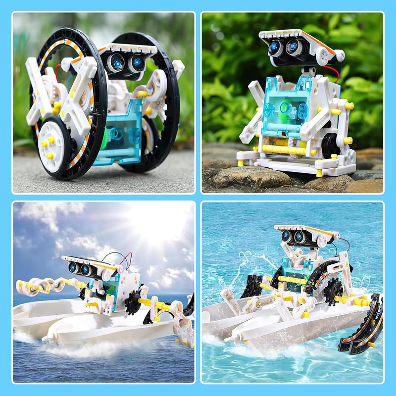 - KIT DE ROBOT SOLAR 12 EN 1: El kit de robótica STEM puede construir 12 tipos diferentes de robots que se pueden mover por tierra o agua, ejercite la capacidad práctica y la imaginación de su hijo, ¡disfrute de la diversión del experimento científico!