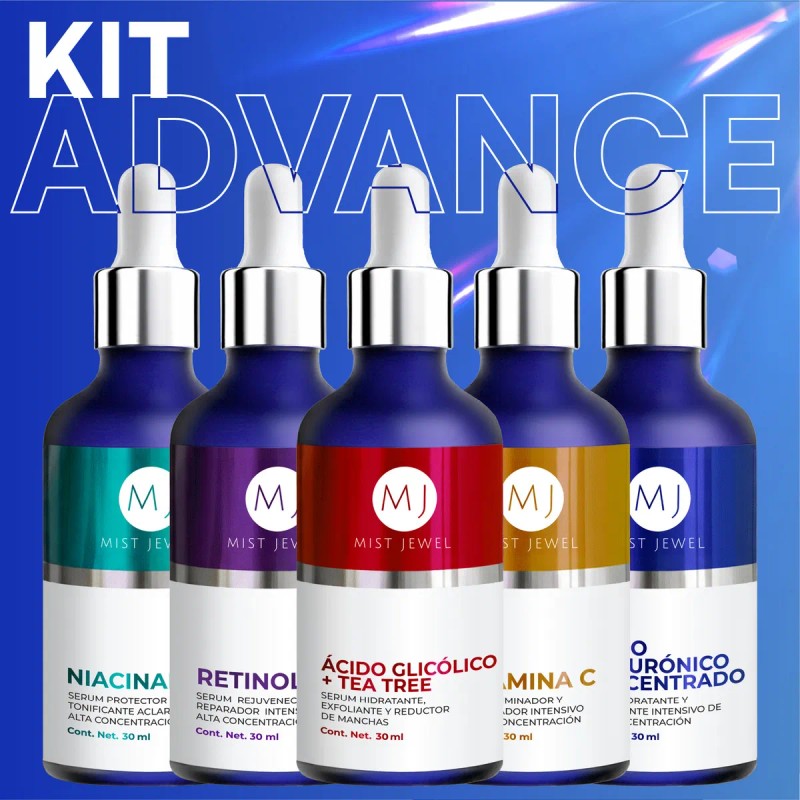 Kit Facial Advance Con 5 Sueros A. hialurnico, Retinol, Vitamina C, Niacinamida, cido gliclico Momento de aplicacin DaNoche Todo tipo de piel...