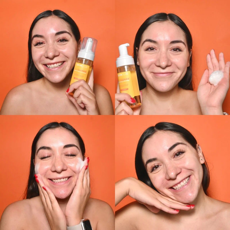 En la mañana y en la noche, con las manos limpias, aplicar una dosis del dermolimpiador en el rostro masajeando suavemente y enjuagar con agua.