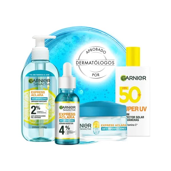 "¡Piel limpia y sin acné en solo unos pasos! 🌟 ¡El Kit Garnier Antiacné está en OFERTA con ENVÍO GRATIS! 🎉 ¡Solo hoy! ⏳"