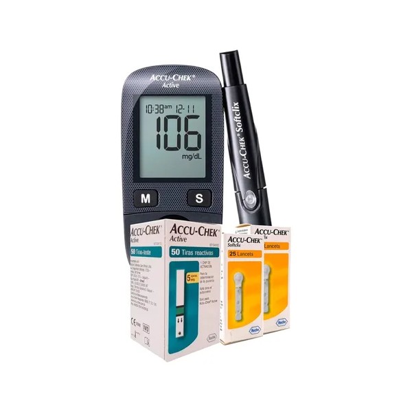 Kit Glucómetro Accuchek Active Con 50 Tiras Y 50 Lancetas