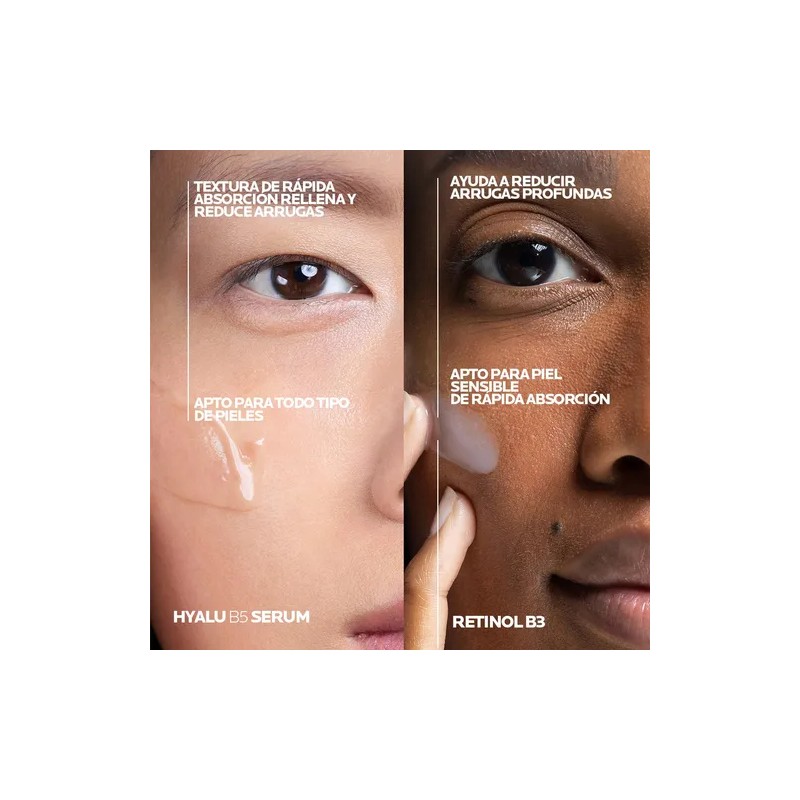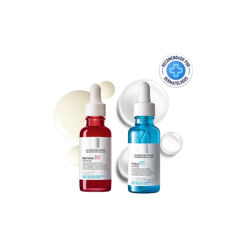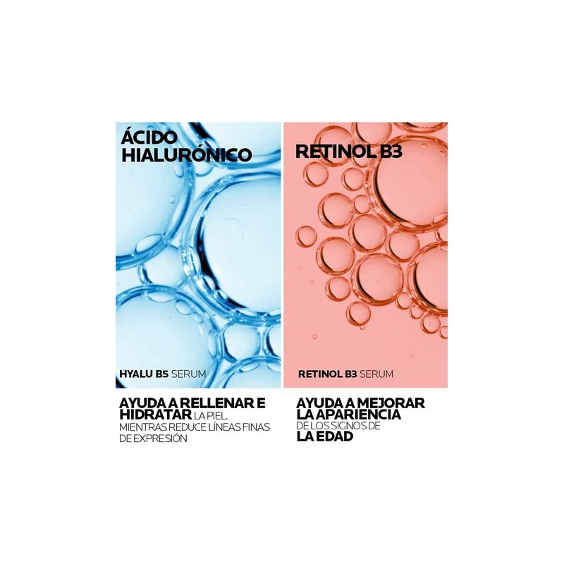 •Descripción: Combate los signos visibles de la edad con este poderoso dúo. El serum de Ácido HialurónicoHyalu B5 Serum hidrata y rellena la piel, mientras que el Serum de Retinol B3, reduce arrugas, mejora la firmeza y unifica el tono.