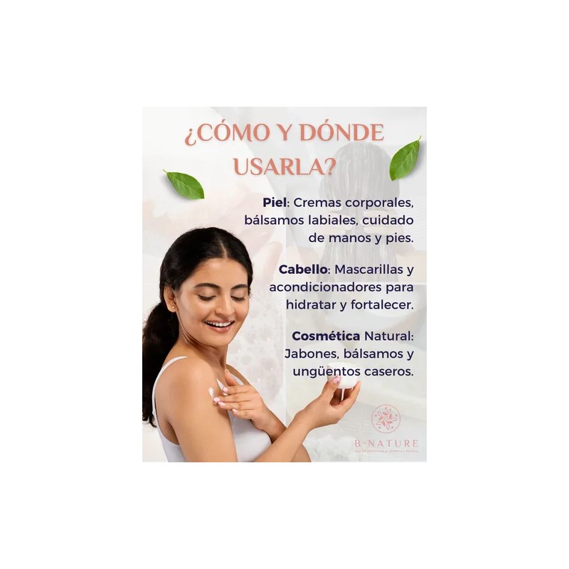 Usos: Cosmética natural, velas, jabones, bálsamos