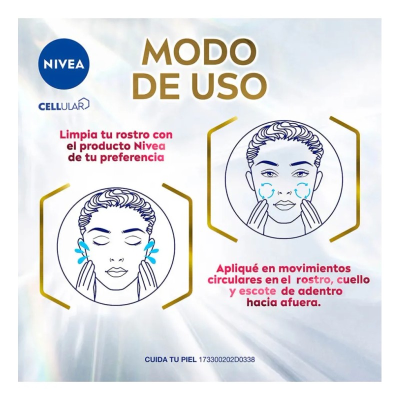 1. Aplicar diariamente sobre el rostro limpio, por la mañana y por la noche antes de la rutina facial.