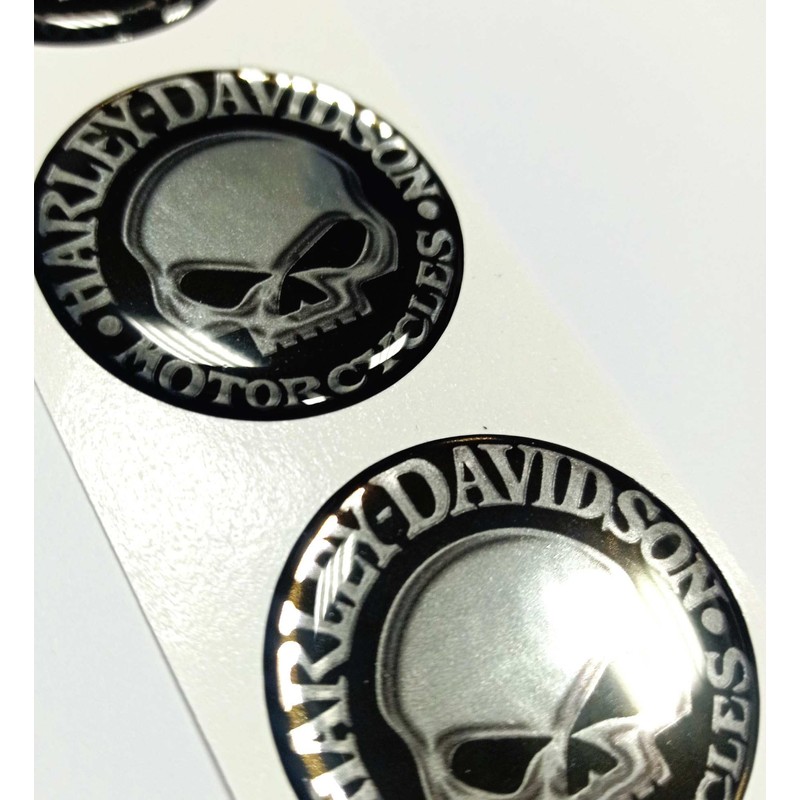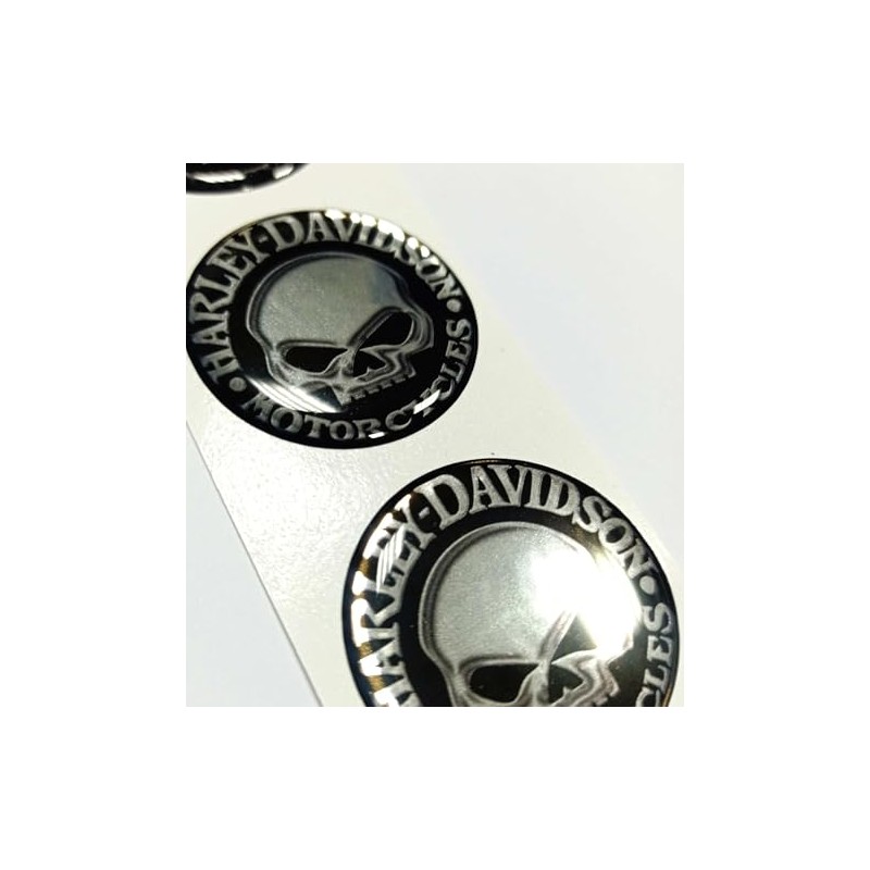 Kit of 3 Resin Skull HD Stickers Compatible with Harley Models, Helmets, Smartphones, Tablets, Black/Silver or Black Chrome. Each single sticker measures 35 mm (Black Chrome)