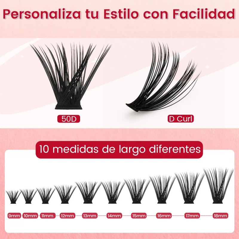 Pestañas 50D ultra densas: Pelos individuales más gruesos y definidos, efecto natural como extensiones profesionales. ¡Ojos de muñeca en segundos, sin huecos ni irregularidades!