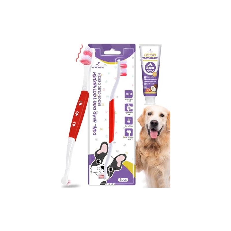 - Cepillo de dientes para perro de doble cabeza recientemente mejorado: diseño ondulado de cabeza de cepillo grande perfectamente adaptado a los dientes caninos, cabezal de cepillo pequeño limpieza precisa extremos muertos, un cepillo para resolver el problema de la cavidad oral del perro