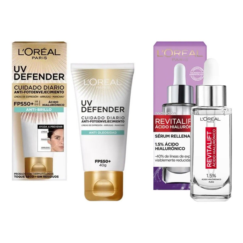 - Kit de cuidado facial L'oréal Paris con protector solar y sérum