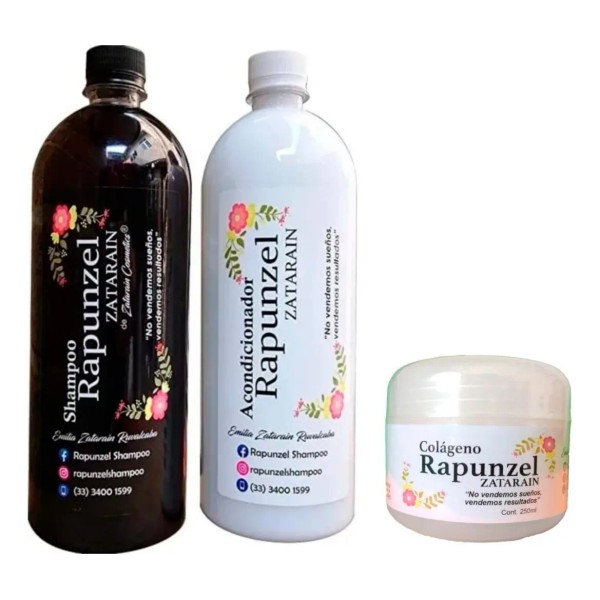 Kit Rapunzel Zatarain, shampoo con colágeno para crecimiento, tratamiento capilar anticaída, shampoo y acondicionador herbal, colágeno para el cabello, shampoo Rapunzel México, fortalecedor capilar natural, cuidado del cabello largo, tratamiento completo Zatarain.
