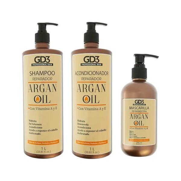 Kit Shampoo Acondicionador Y Mascarilla Gd3 Aceite De Argan