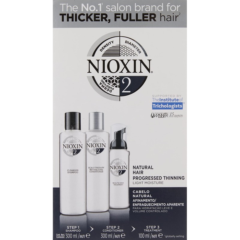 Kit Sistema 2 Nioxin Shampoo 300 ml, Acondicionador 300 ml, Tratamiento 100 ml Thicker, Fuller Hair