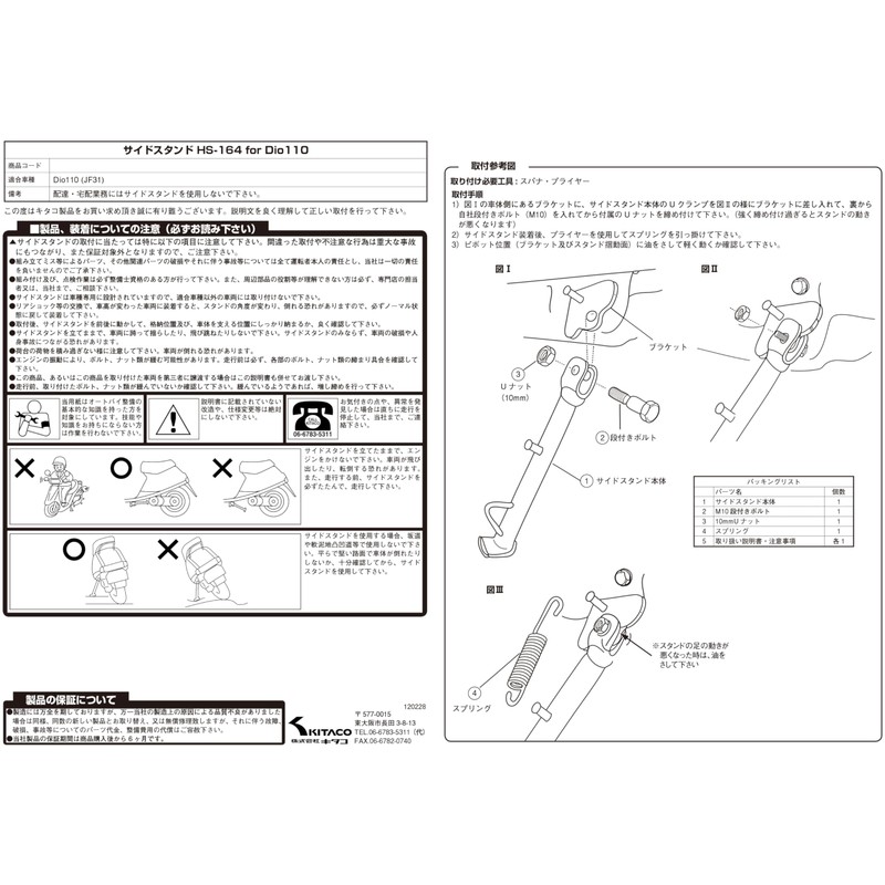 Kitaco 656-1010164 Side Stand HS-164 (Plated) Dio 110 (JF31 All Models)