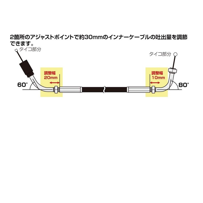• Inner cable discharge amount: Approx. 1.2 inches (30 mm) adjustable