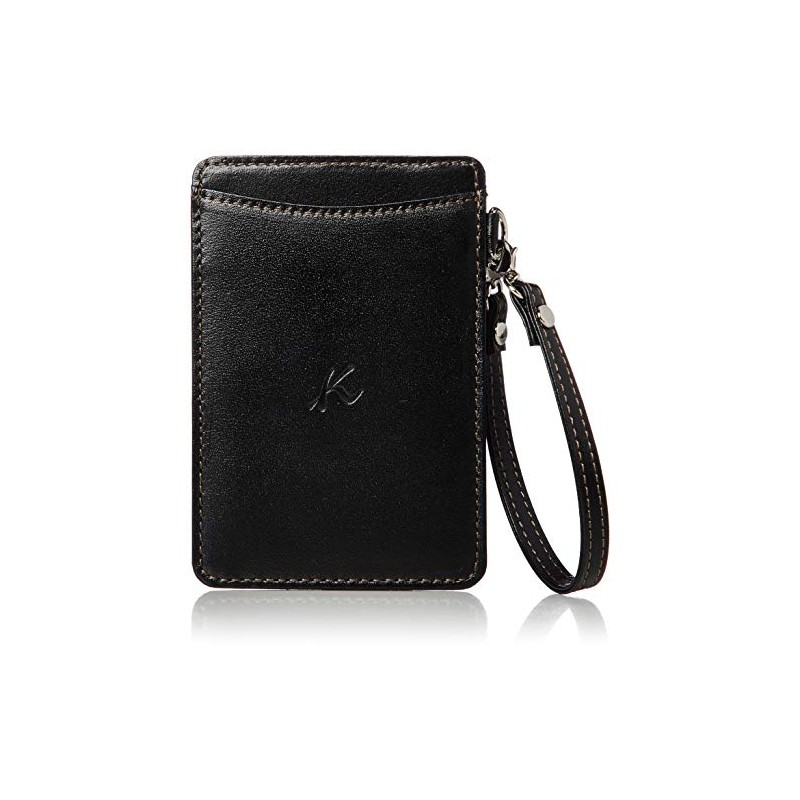 Kitamura PH0674 Pass Case with Strap, Black/Sand Beige Stitching [Black] 15521