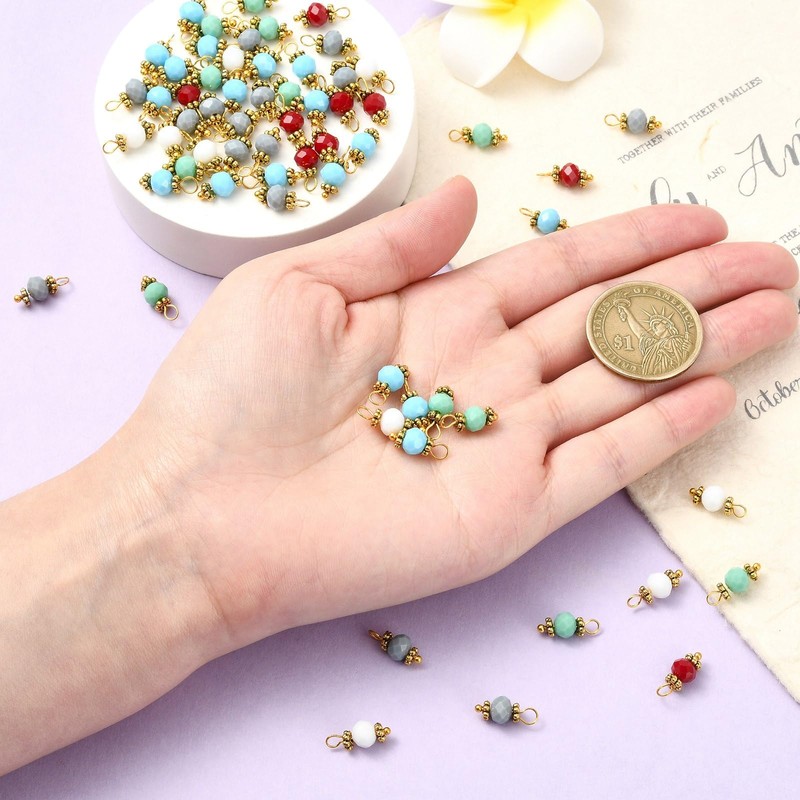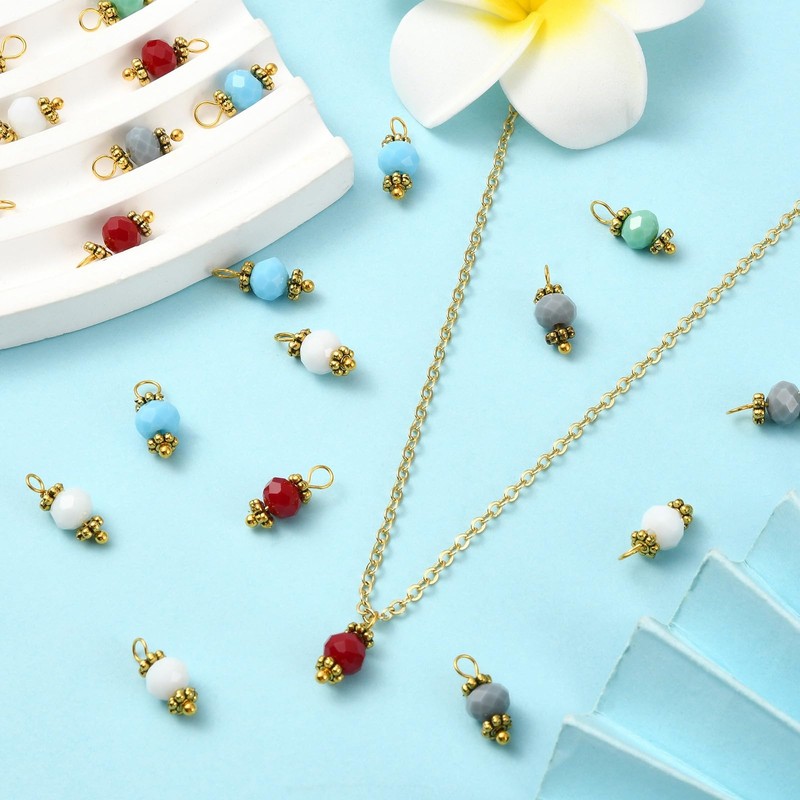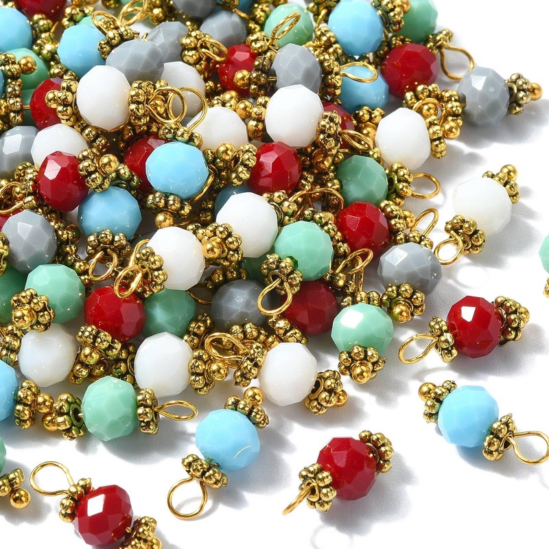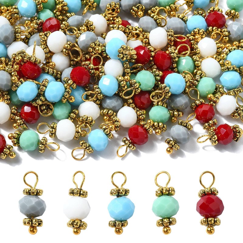 KitBeads 100pcs Random Multicolor Glass Bead Dangle Charms Imitation Gemstone Faceted Ball Charms for Jewelry Making Bulk