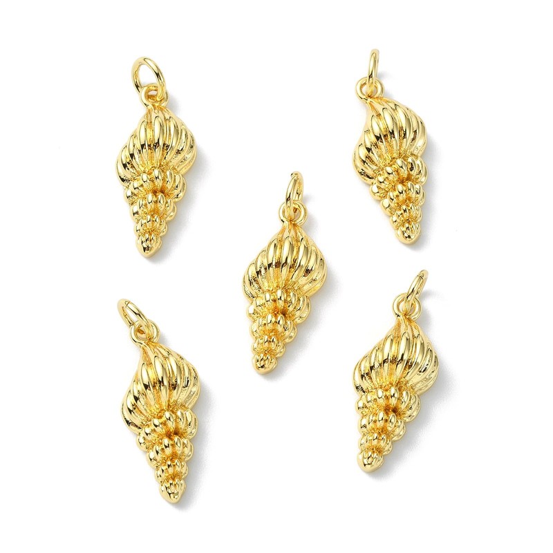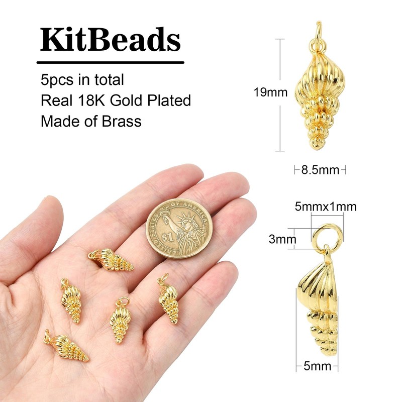 KitBeads 5Pcs Golden Spiral Shell Charm Cowrie Seashell Charm Ocean Summer Beach Conch Charm for Jewelry Making Bracelet Necklace Bulk