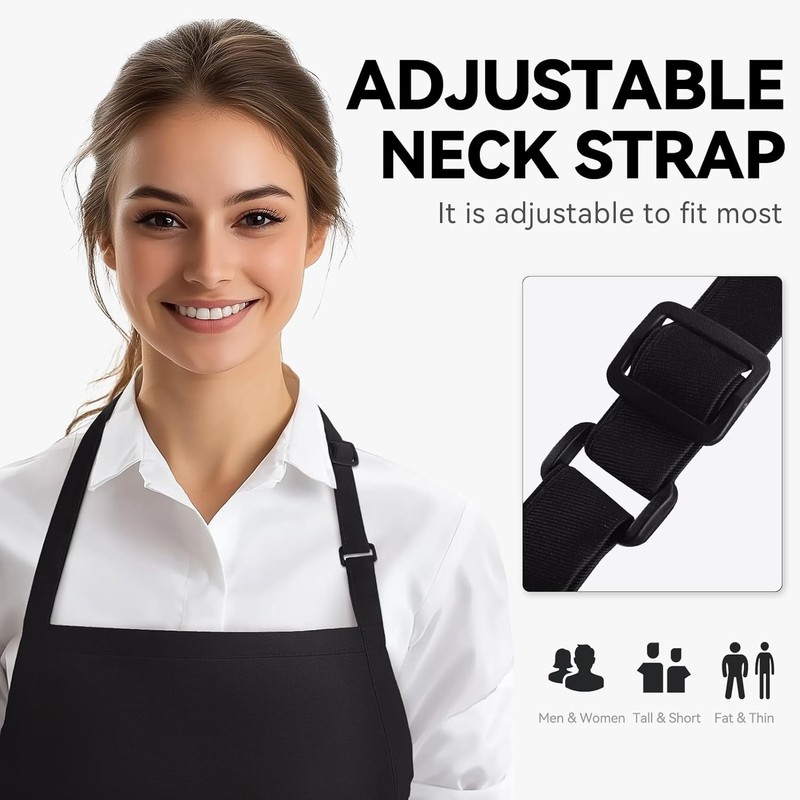 Kitchen Cooking Apron with 3 Pockets, Adjustable Bib Apron Chef Aprons for Women