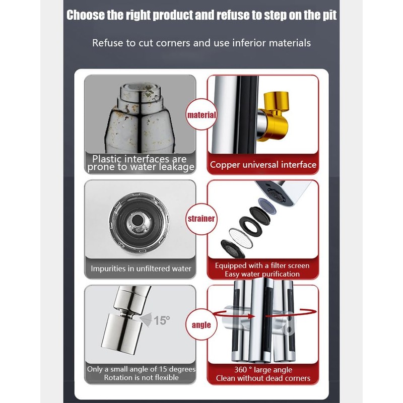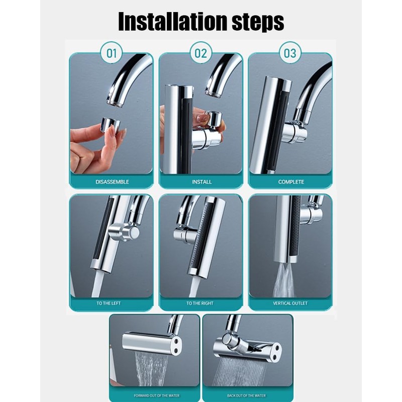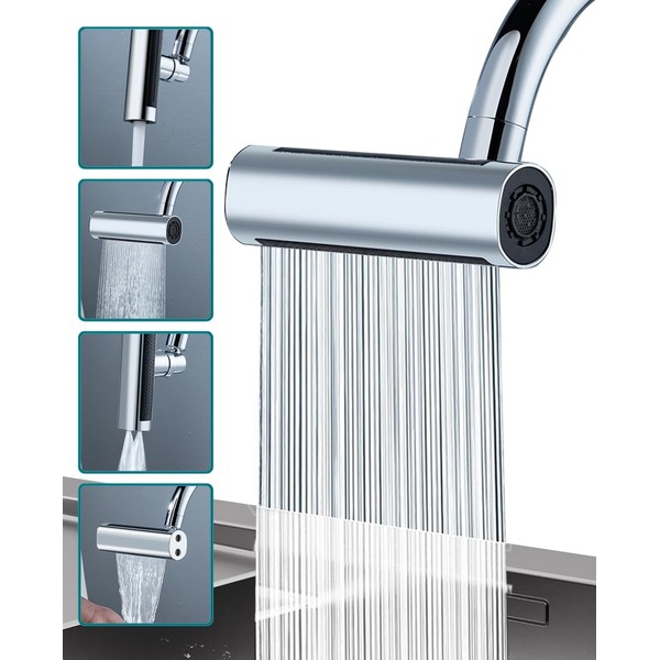 - 4 Function Modes - This faucet extender for kitchen sink has 4 water outlet modes, can meet different kitchen needs. You can switch these modes by rotating and using buttons to match different usage scenarios. Waterfall mode is great for rinsing fruits and vegetables, while power mode is perfect for rinsing dishes, making them easier to clean. Scraper mode helps you clean hard-to-reach