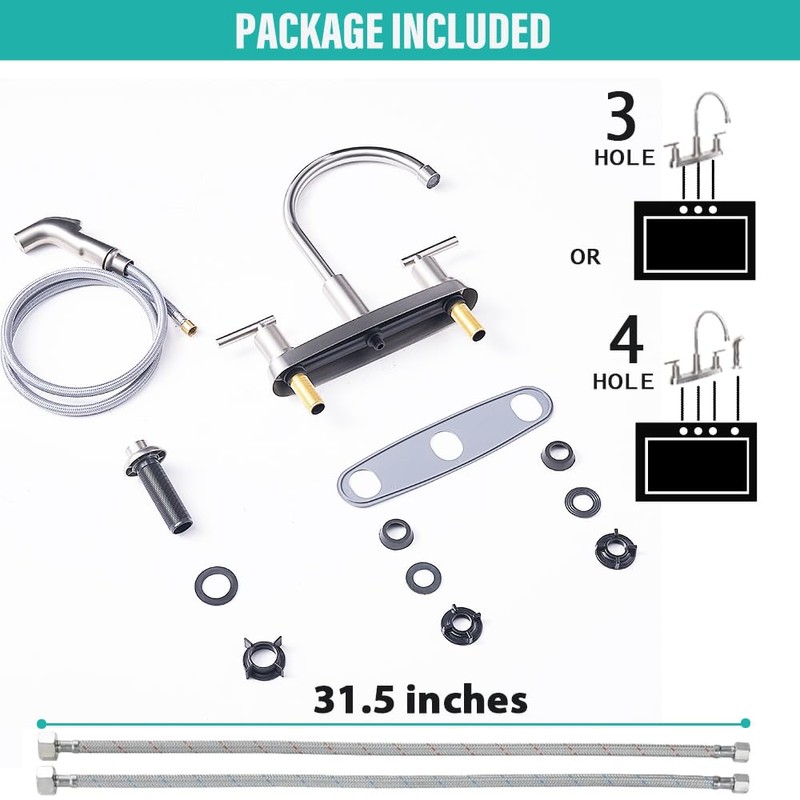 Kitchen Faucet with Sprayer, Brushed Nickel Kitchen Sink Faucet, 3 or 4 Hole RV Faucet for Kitchen Sink, Stainless Steel Touch Kitchen Faucet with Side Sprayer, TDLKF024L