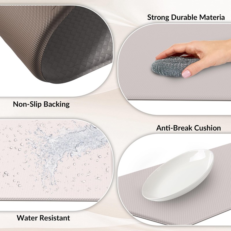 - Non-Slip Performance: Our wide, Kitchen Mats provide secure footing on any surface, ensuring safety and stability while you work in the kitchen.