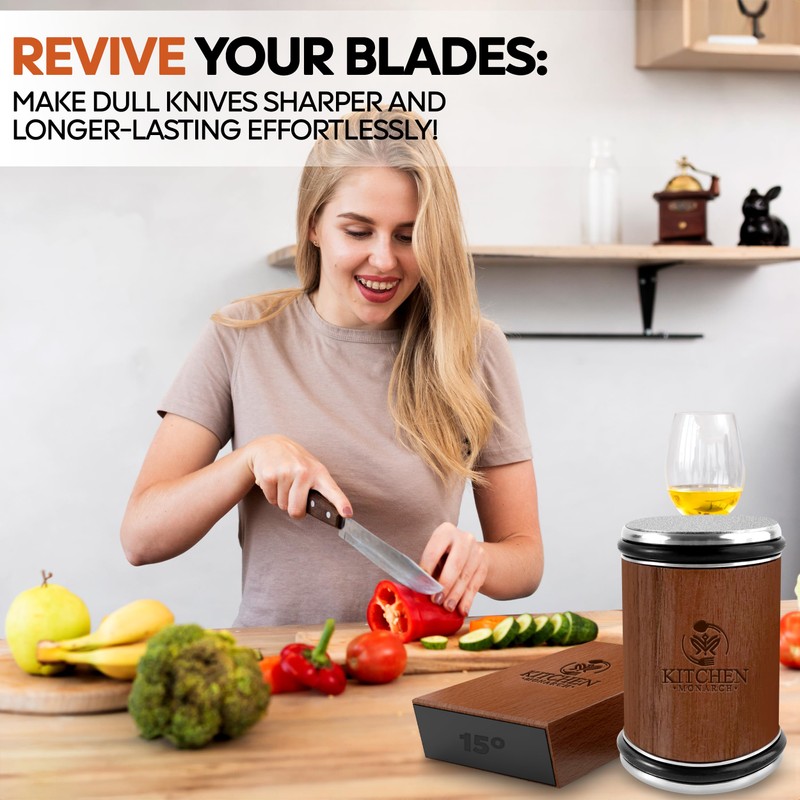 Kitchen Monarch Rolling Knife Sharpener - Knife Sharpening Kit for Kitchen Knives - Leather Strop Non-Slip Base, Adjustable Manual Knife Sharpener for 15° & 20° Angles - Perfect for Home & Kitchens