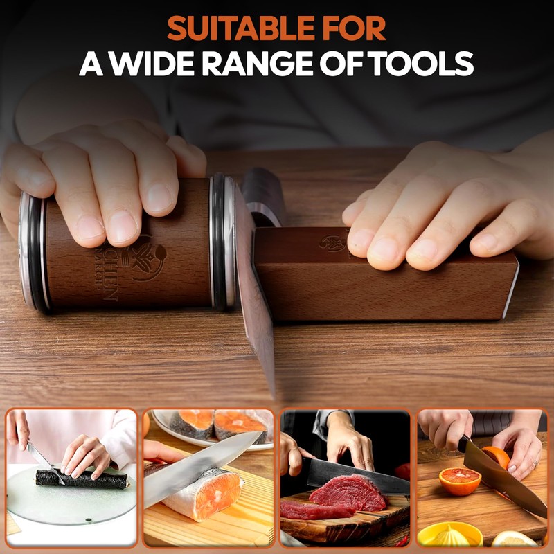 - 🌟 Durable, Elegant & Built to Last: The knife sharpener kit is crafted with natural wood and industrial-grade sharpening discs, this tool is not just effective—it looks great in your kitchen too! Whether you're a home cook, professional chef, or outdoor enthusiast, this sharpener ensures reliable, long-term performance for all your knives.