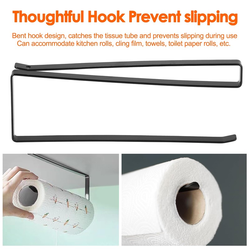 Kitchen Roll Holder, 10 x 3 Inches Under Cupboard Roll Paper Holder, Modern Paper Towel Holder for Kitchens, Bathrooms, Sinks, No Need to Drill Holes for Installation