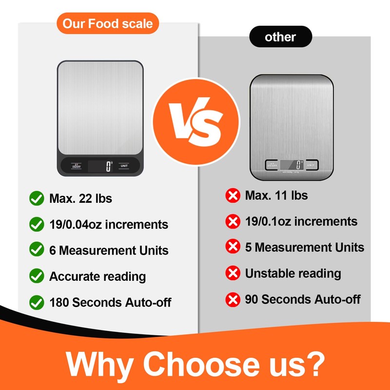 • ✅【Compact and Portable】Our kitchen scale's compact design makes it a breeze to store away, keeping your kitchen clutter-free while always at hand when needed.