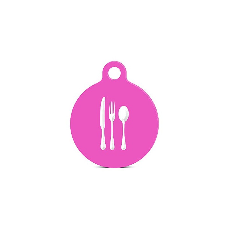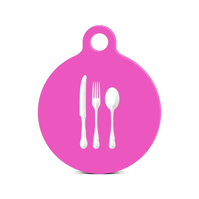 Kitchen Set Round Keychain with Tab Engraved Utensils Knife Fork Spoon Hot Pink